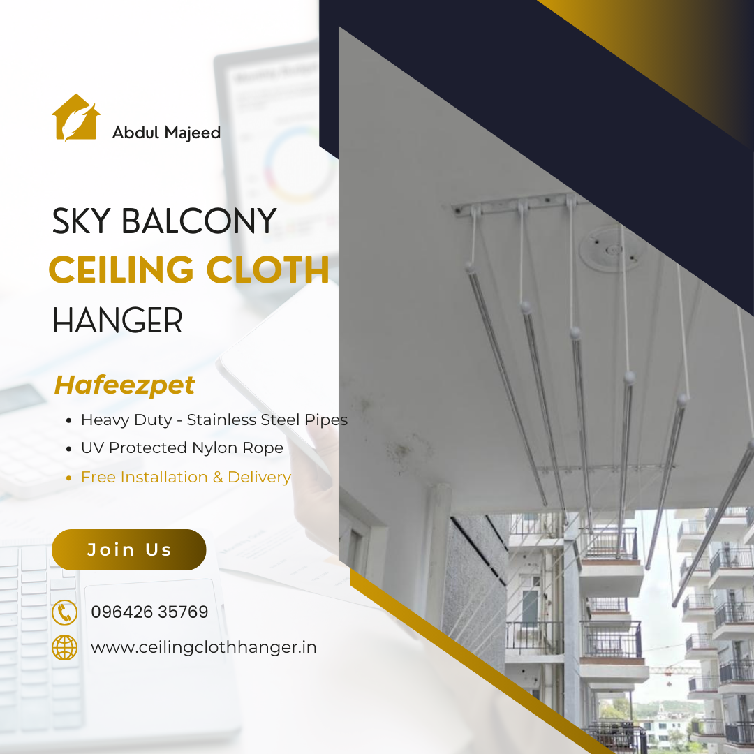Ceiling Cloth Hanger in Hafeezpet, Hyderabad is a modern, space-saving solution for drying clothes efficiently in homes and apartments. Our ceiling-m…